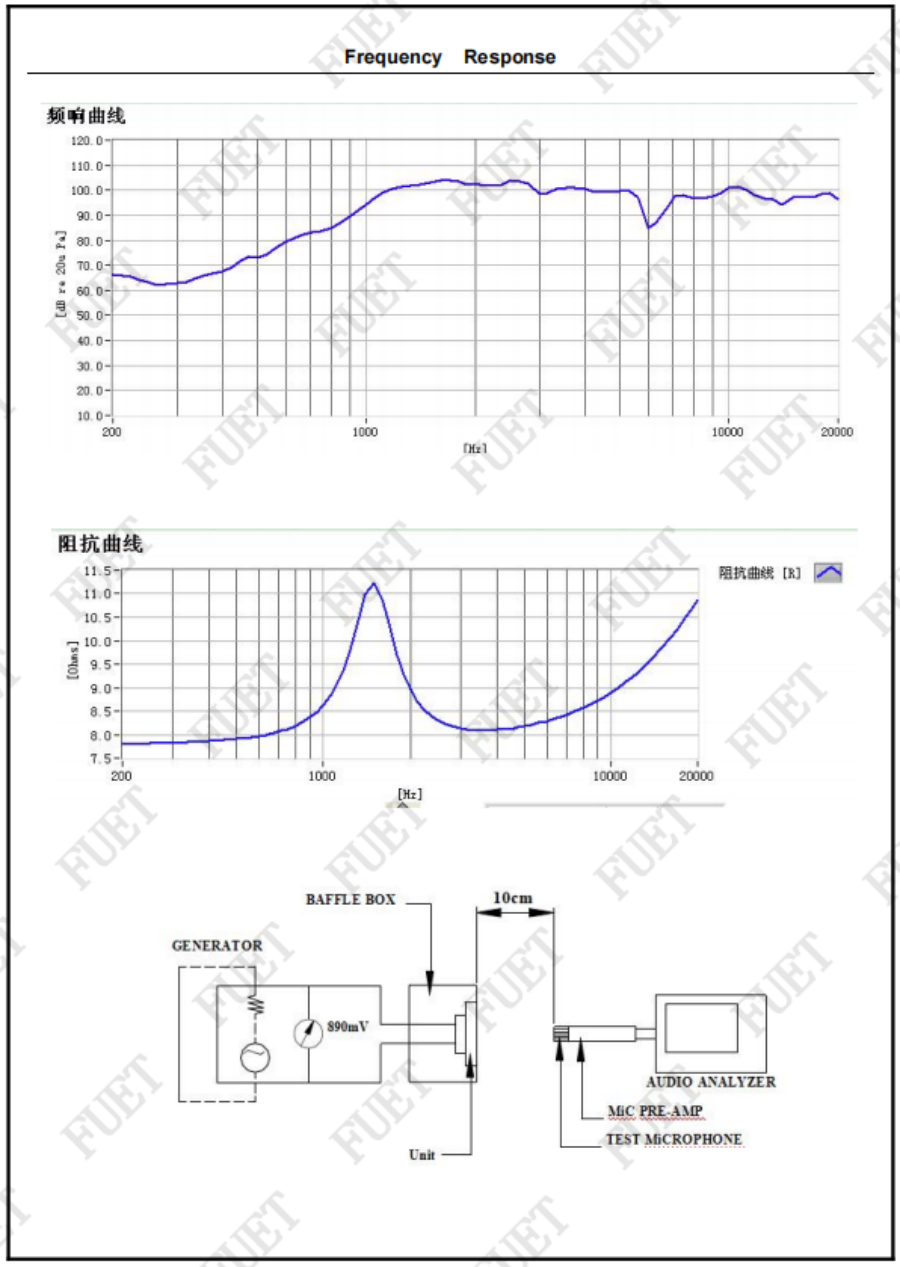 | Impedance | 8.0Ω±15% | At 3000Hz 1.0Vrms |